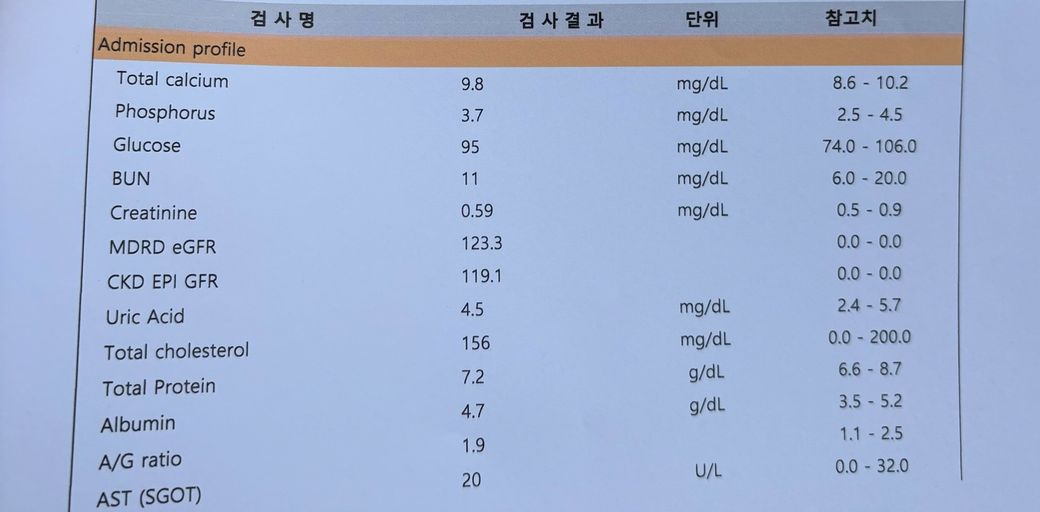 올리신 사진의 소견을 보았을 때에는 딱히 갑상선 관련 수치가 있어 보이지 않습니다. 갑상선 관련된 검사 수치는 이야기 하신 T3, T4 그리고 TSH 등의 수치인데 사진의 결과지에는 그러한 수치들이 없네요.