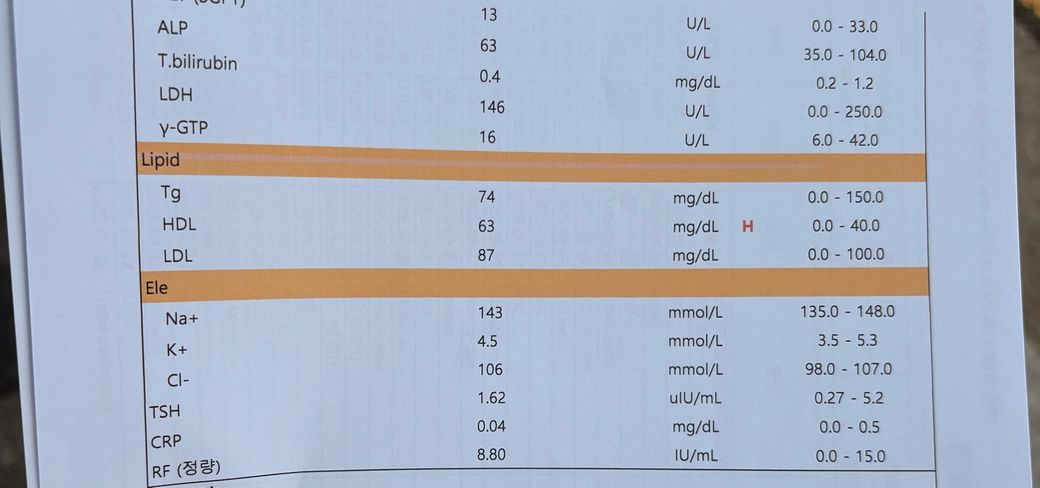 TSH 갑상선자극호르몬 항목은 있네요 정상이구요
