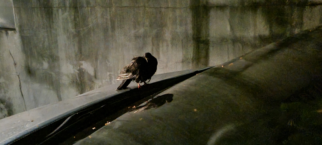 문제가 심각한 새입니다 나이가 너무 많이 들었거나 아니면 다른 동물들에게 공격을 당하여서 날개와 꼬리가 다 찢어져 버린 비둘기 같습니다 늙은 비둘기 엄청나게 사냥을 당하다가 피해 온 그런 비둘기의 모습이 아닐까 합니다.