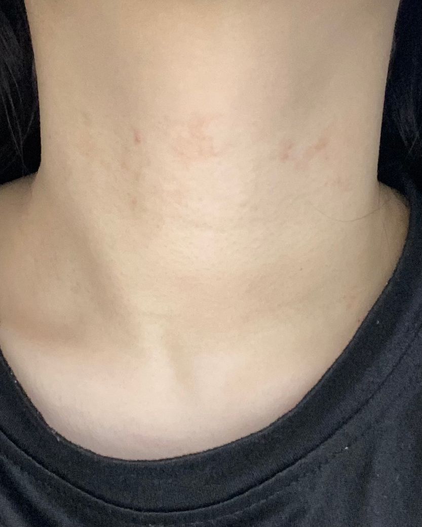 2일동안 1일2회 도포하였습니다 ( 목,명치부분에서 배꼽부분까지 이어지는 부분 )