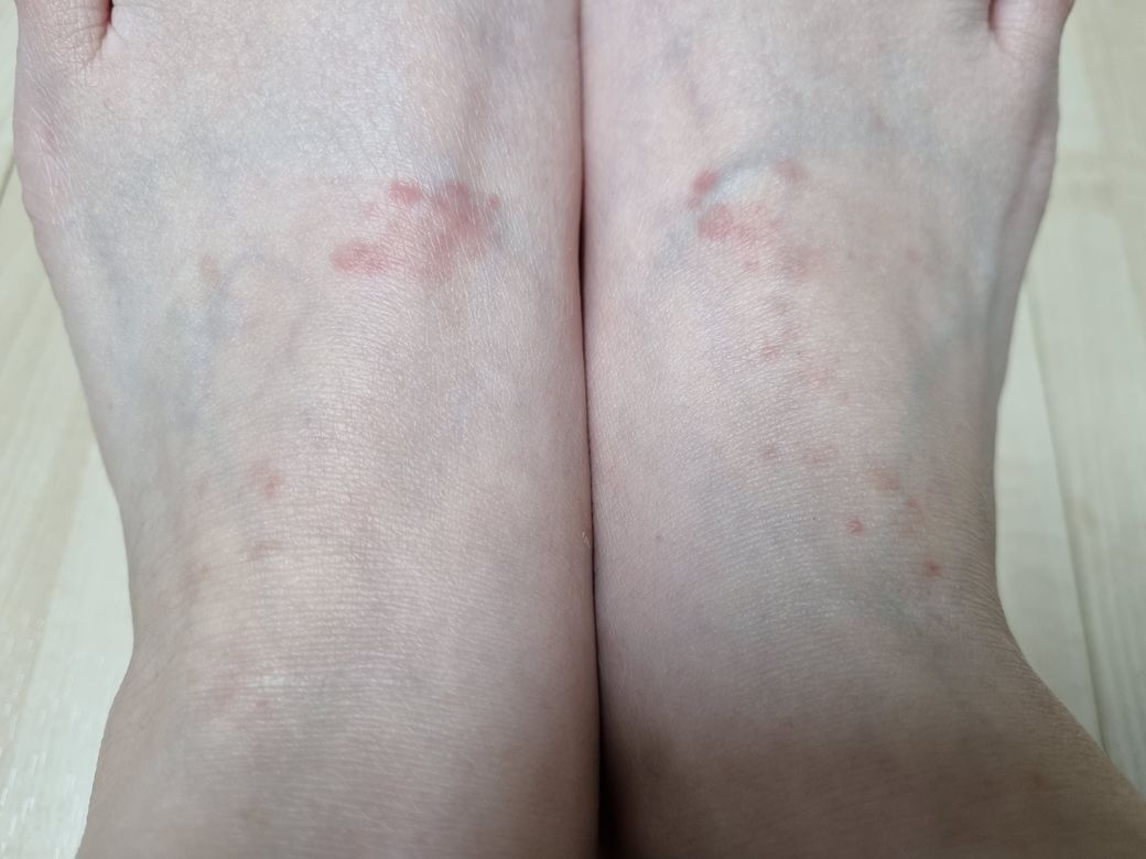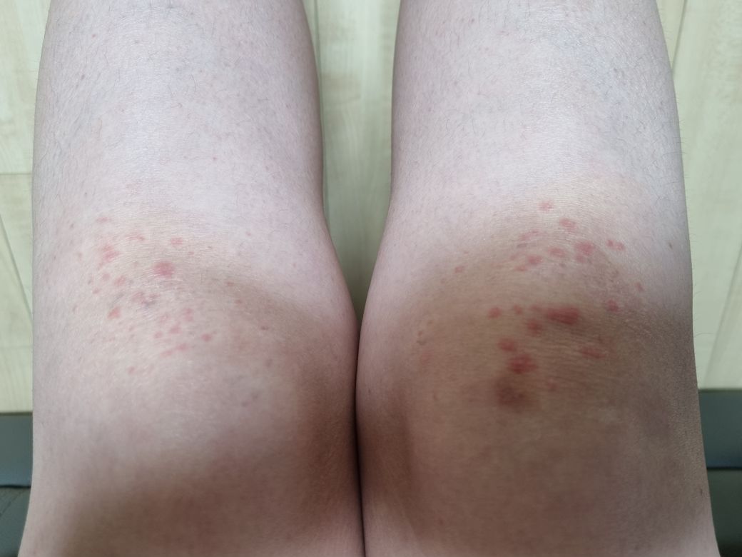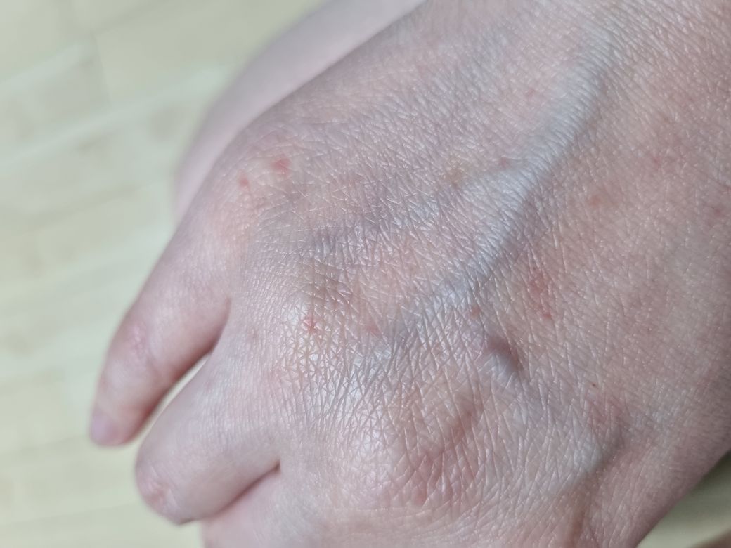 무릎이나 손등도 빨갛게 올라왔다 사라졌다 반복 이에요