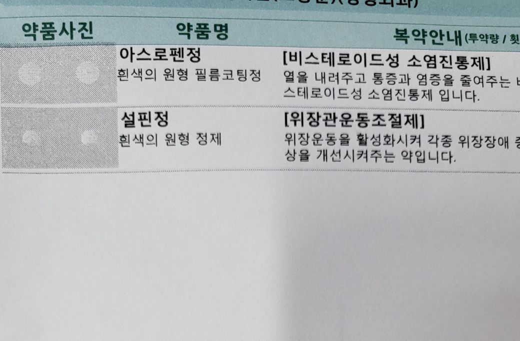 정형외과 약물의 아스로펜정과 부루펜은 같은 계열의 약물로 보통 1가지만 복용하는 것을 권장합니다.