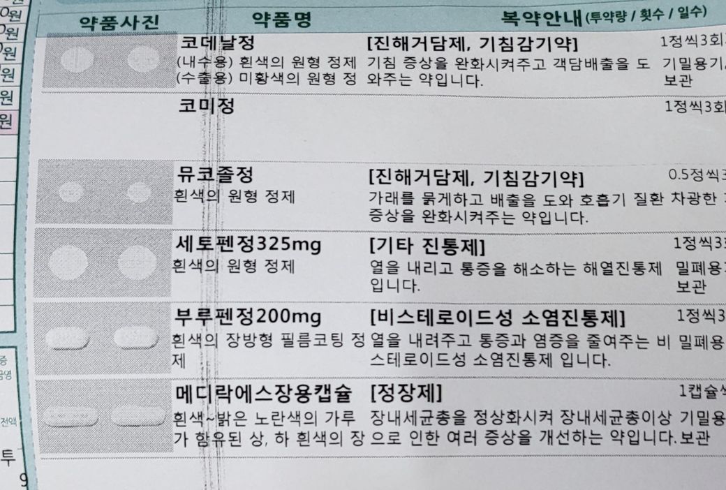 내과약의 부루펜정은 빼고 드시는 것이 좋습니다.