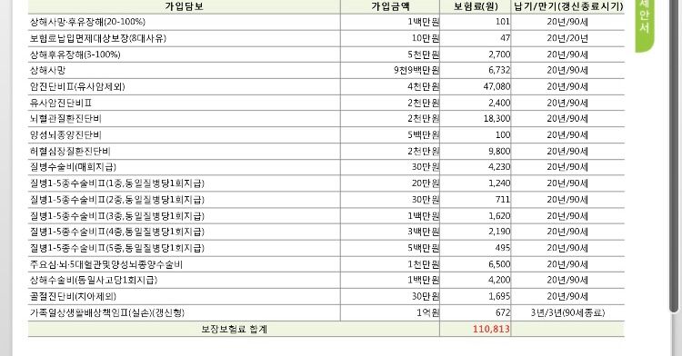 보험료 110,813원이면 보장은 이정도면 좋습니다.