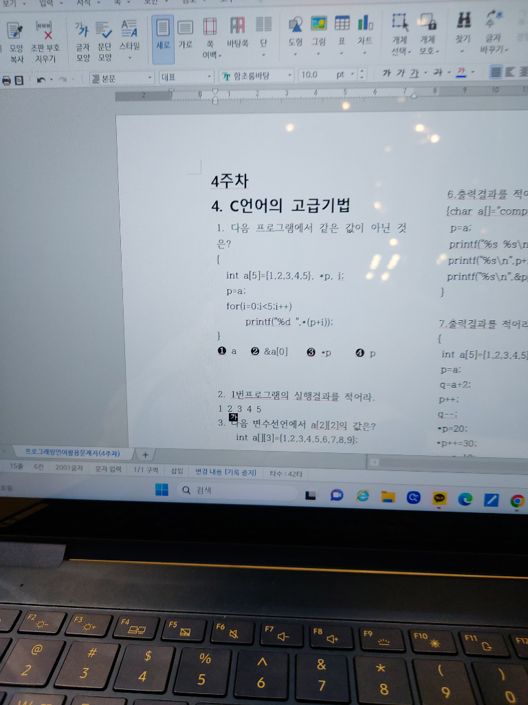 3번은 역참조 연산자를 사용한 것입니다. a,&a[0],p는 모두 동일하게 배열의 주소를 출력합니다