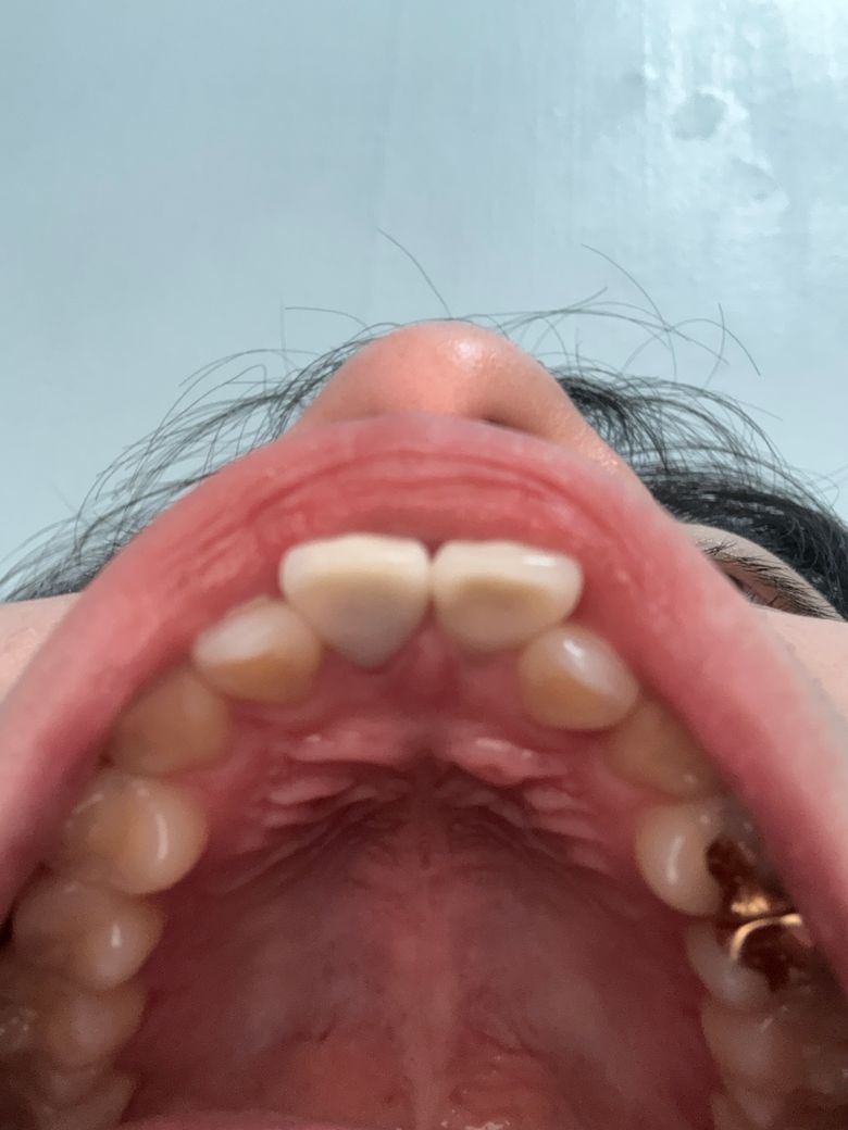 사진으로 봤을 때 위에 있는 측절치가 반대 교합으로 몰리고 있는 것으로 보입니다. 반대교합인 치아를 원래 자리로 이동하는 것은 높은 기술이 필요하기 때문에 부분 교정이 힘들 수 있습니다.