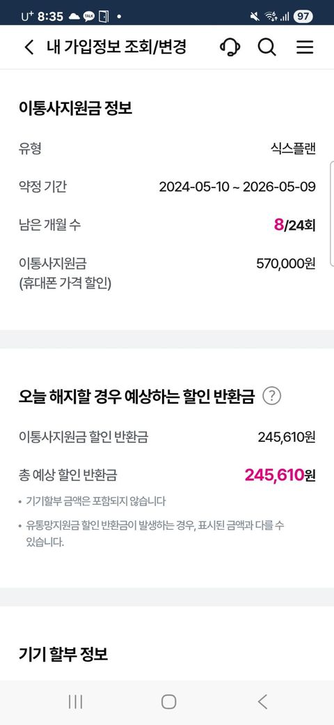 근데 8 개월 지났으니 가능 합니다 단지 위약금이 발생 합니다 홈페이지 나의정보