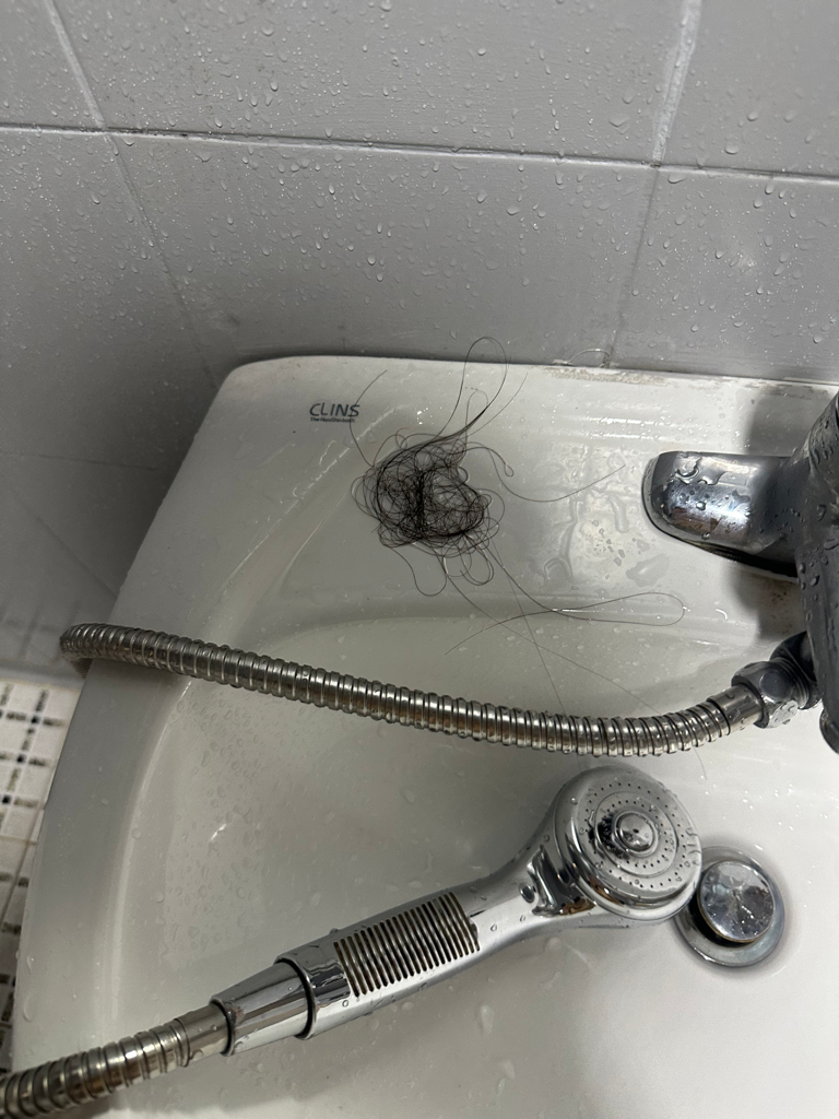 머리카락이 길어서 빠진 머리를 모은 것만으로는 판단이 어려우니 가까운 피부과를 들러 평가받아보시는 것이 좋겠습니다.