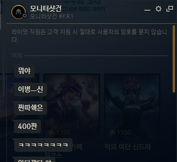 (리그오브렌전드) 1:1채팅 이거 고소 가능한 사항일까요 ?