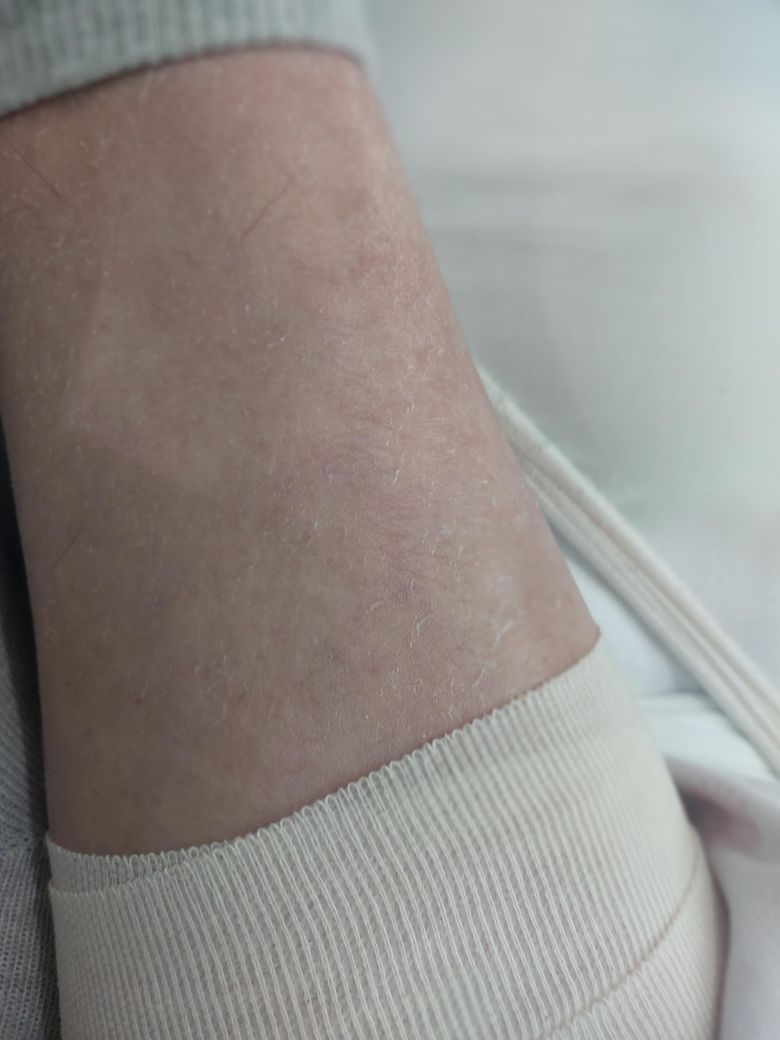 저번주 부터 사진에 보이듯이 갈라지듯 각질인지 생겼어요 보습로션 발라도 2틀이면 또 그대로구요 발바닥 다리만 그러거든요 발다리가 신경 다친후 얼음짝처럼 차갑습니다