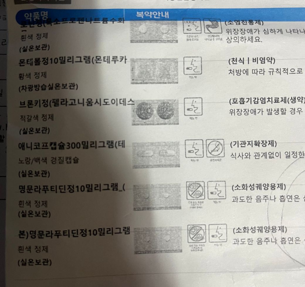 약품명 사진 첨부 합니다.