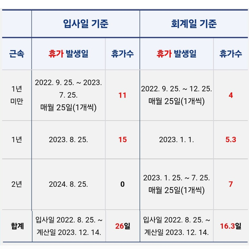 입사일기준으로 해야된다고 알고있는데 맞을까요?