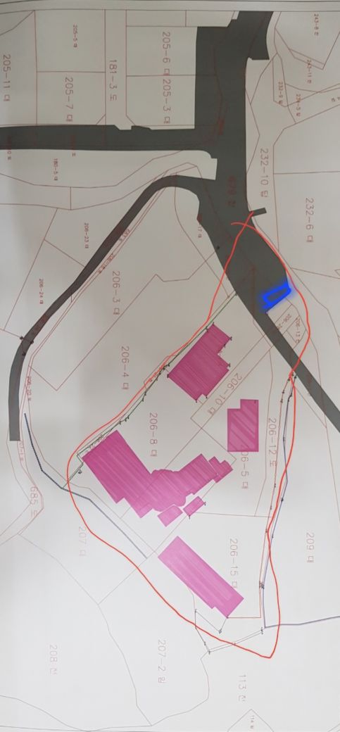 파란색 위치에 컨테이너 박스를 놔뒀는데 지자체에서 갑질합니다. 국가에서 인정한곳에서 측량할때 측량하시는분이 짜투리땅 사용가능하다고 했는데 땅도 뺏기고 그로인해 꽤 넓은 하천도 사용불가해서 손해가 이만저만이 아닙니다. 이곳 시세는 평당300입니다. 이게 말이됩니까?