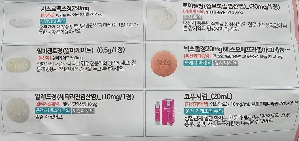 아침엔 로이솔정 알마겐트정 코푸시럽