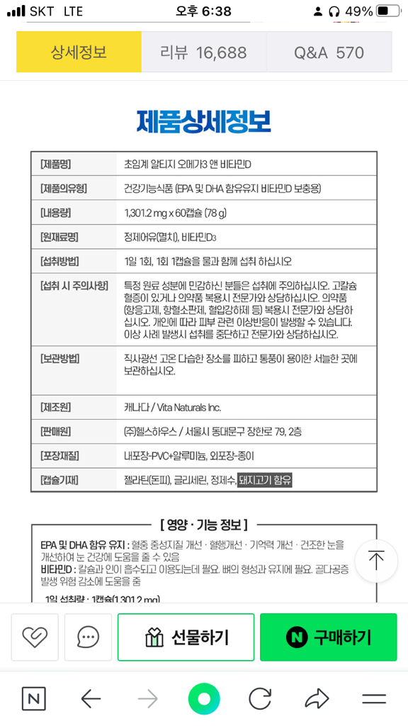 오메가3를 고함량으로 드시려는 목적이 있으시다면,