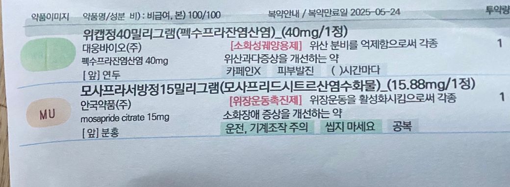따라서 감기약과 모사프라서방정만 같이 복용하는 것을 권장드립니다.