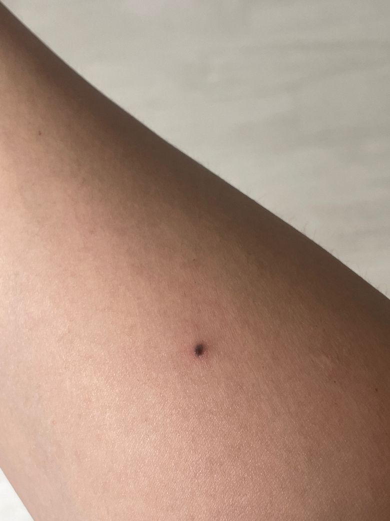 우측 팔에 2mm 정도의 검은점이 몇년전에 생겼는데 출혈이 있습니다. 흑색종일까요??