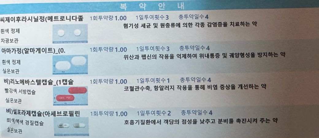 이전엔 세파클러를 처방받았는데, 이번에는 후라시닐을 받았다구요.