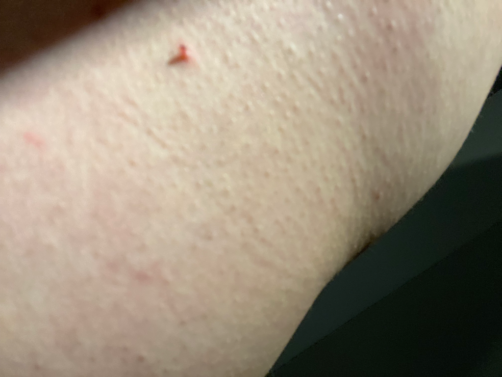 피부병변에 대해 궁금하시군요. 오돌토돌하게 보이는 부분은 모공각화증이 의심스럽습니다. 특별히 피부 건강에 해를 입히는 상황은 아니지만 미용상 문제가 된다면 피부과를 방문해 상담받아보실수 있겠습니다.