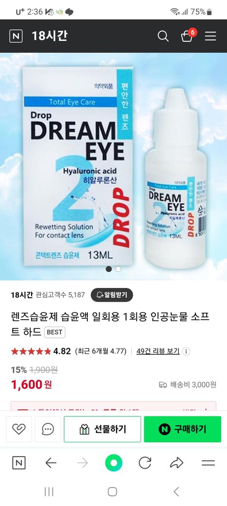 평소 안구가 너무 건조해서 약국에서 아이드롭을 사다 썼는대 인터넷으로 인공눈물 검색하니 드림아이라고 나오는대 렌즈습윤액이라고 뜨네요 이제품 안구건조증에 그냥 한방울씩 써도 되는건가요? 아니면 렌즈용제품일까요?