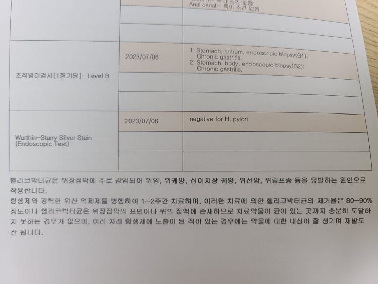 작년 건강검진에서 위조직검사를 했는데 관련내역이 궁급합니다.