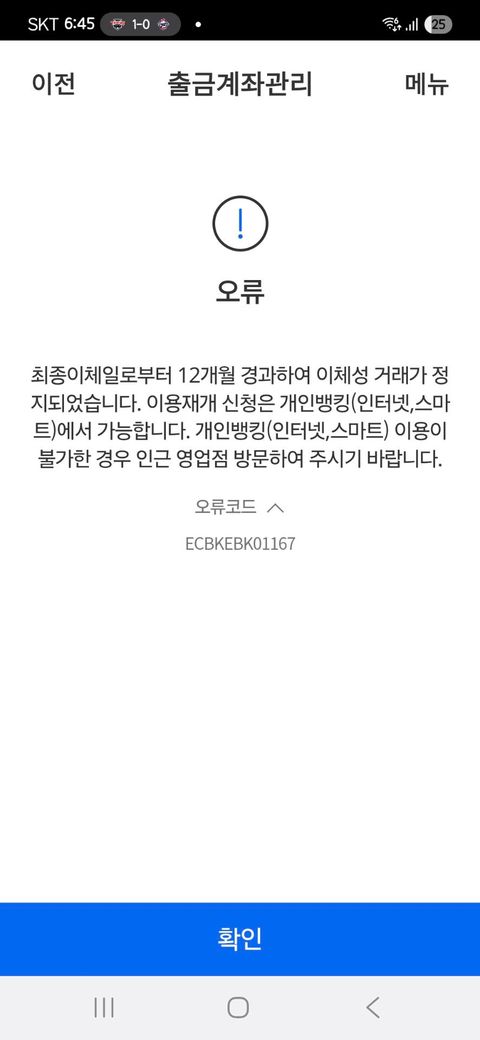 네 12개월 이상 해당 계좌를 사용하지 않으면 정지가 되고 있습니다