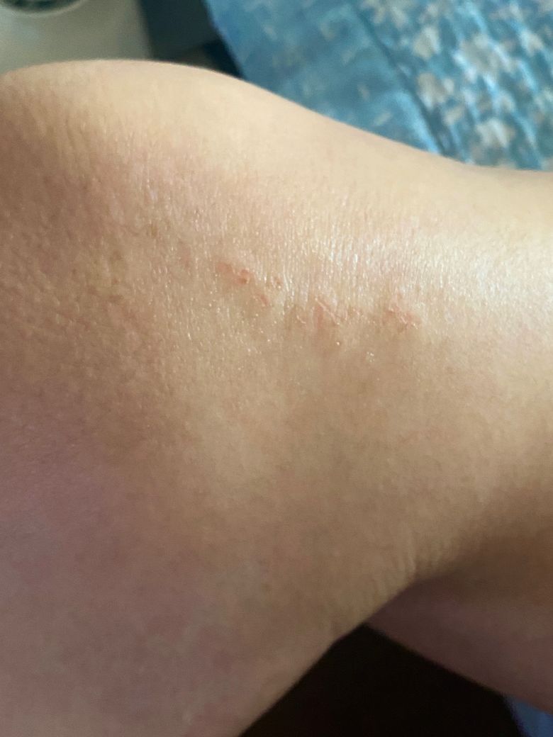 일단 상처가 언제 발생하였는지가 중요해 보이는데, 현재 상처로 봤을 때는 벌레 물림 자국이나 해당 부위의 마찰이 있으면서 피부가 벗겨진 상태로 생각됩니다.