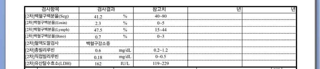 안녕하세요 26세 남자입니다. 이번에 특수채용검진을 받았는데 1차에서 백혈구수 재검이 떠서 2차로 7일만에 다시 받았는데 백혈구수 감소증이라는거 같은데 다시 오를까요? 문제가 있는지 봐주세요