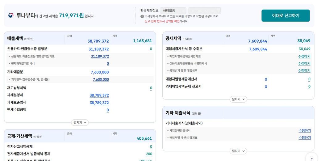 부가세 신고자료 매출3800 매입760만원입니다