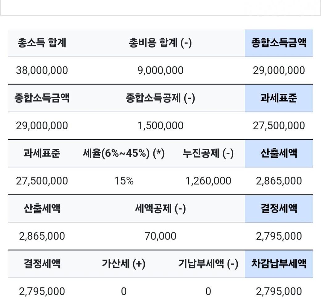 종합소득세 계산기 결과 279만원