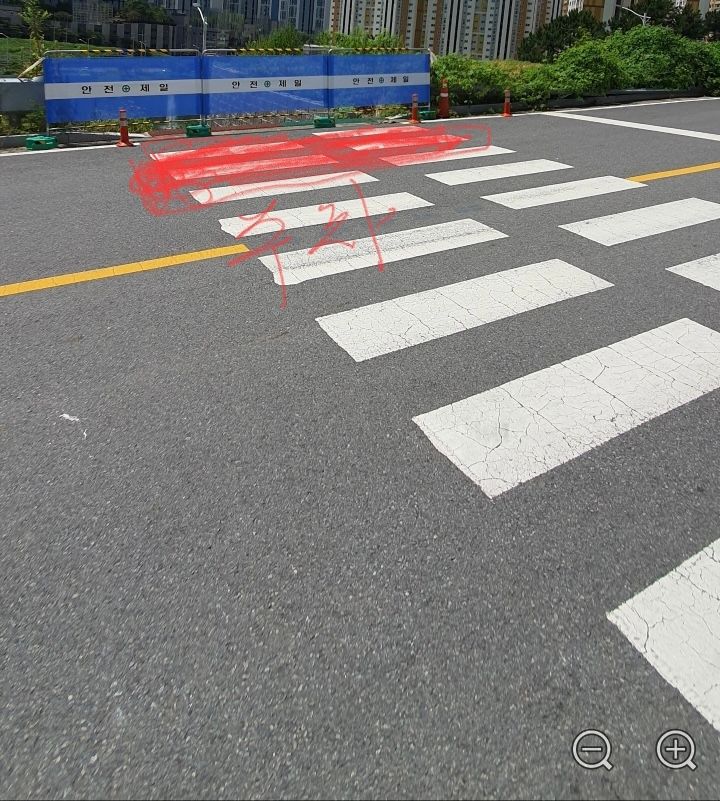 공사중인 현장이었고, 횡단보도 신호도 없고 사람이 건널 수도 없어서 빨간색으로 표시한 부분에 주차했는데, 이것도 과태료 대상이 될 수 있나요?
