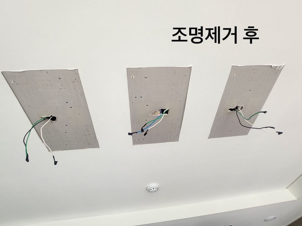 조명업체에서는 원래는 도배지를 다 바르고 전기선 나오는 구멍만 뚫어놨어야 했고 이건 하자접수를 하셔야한다고 알려줘서 하자접수를 했더니,