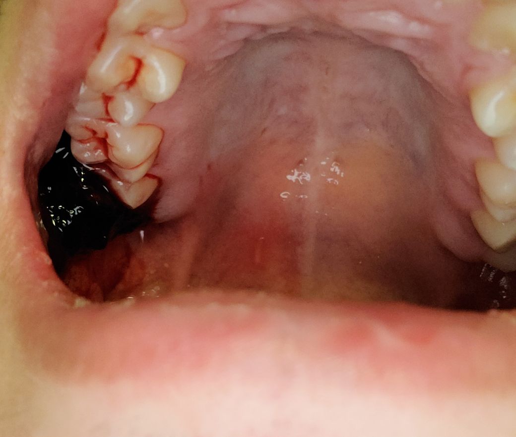 현재 피떡이 져있는 것은 혈병으로 보이며, 이는 해당 부위 조직이 회복되는 과정으로 억지로 제거는 하지 않길 권합니다.
