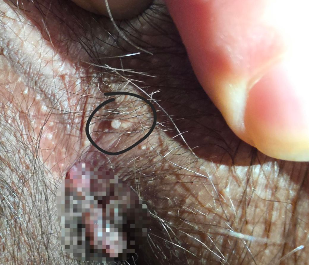 사진상 병변은 작은 흰색 구진(papule)으로 보이며, 표면이 비교적 매끈하고 뾰족하거나 꽃양배추 모양의 유두상 증식은 뚜렷하지 않습니다. 전형적인 곤지름(첨형 콘딜로마, HPV 감염)은 표면이 거칠고 돌출되며, 시간이 지나면서 크기와 개수가 증가하는 경향이 있습니다. 따라서 현재 사진만으로는 전형적인 곤지름 소견과는 다소 거리가 있어 보입니다.
