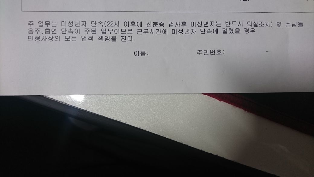 질문 올립니다. 사진 참고해주시고요. 만약 단속에 걸렸을시 실제 저 계약서가 효력이 있는지 제가 모두 부담하는 것이 맞는지 궁금합니다