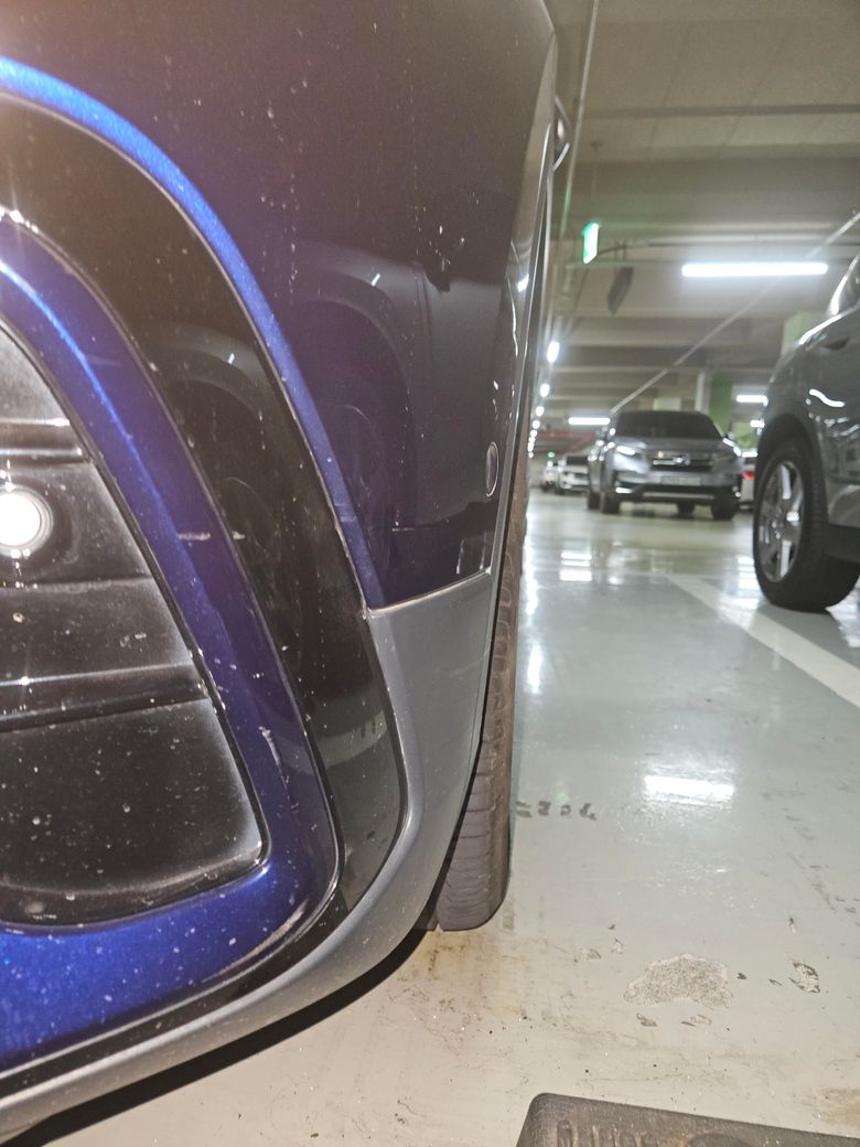 운전석쪽 앞범퍼 쓰린흔적이있습니다 6월6일에 주차했고 6월9일 확인했습니다. 차량은 티구안올스페이스 2024년식입니다. 사진 올립니다.