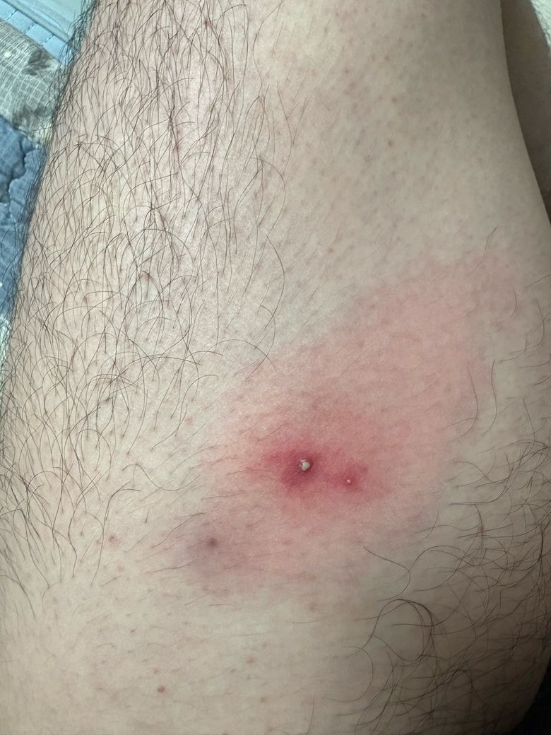 허벅지에 저렇게 사진처럼 뾰루지?가 낫는데 너무 아파요.. 따른덴 없고 딱 저기위치만 저렇게 하나 낫는데 뭘까요?? 혹시 성병 이런건 아니겠죠?