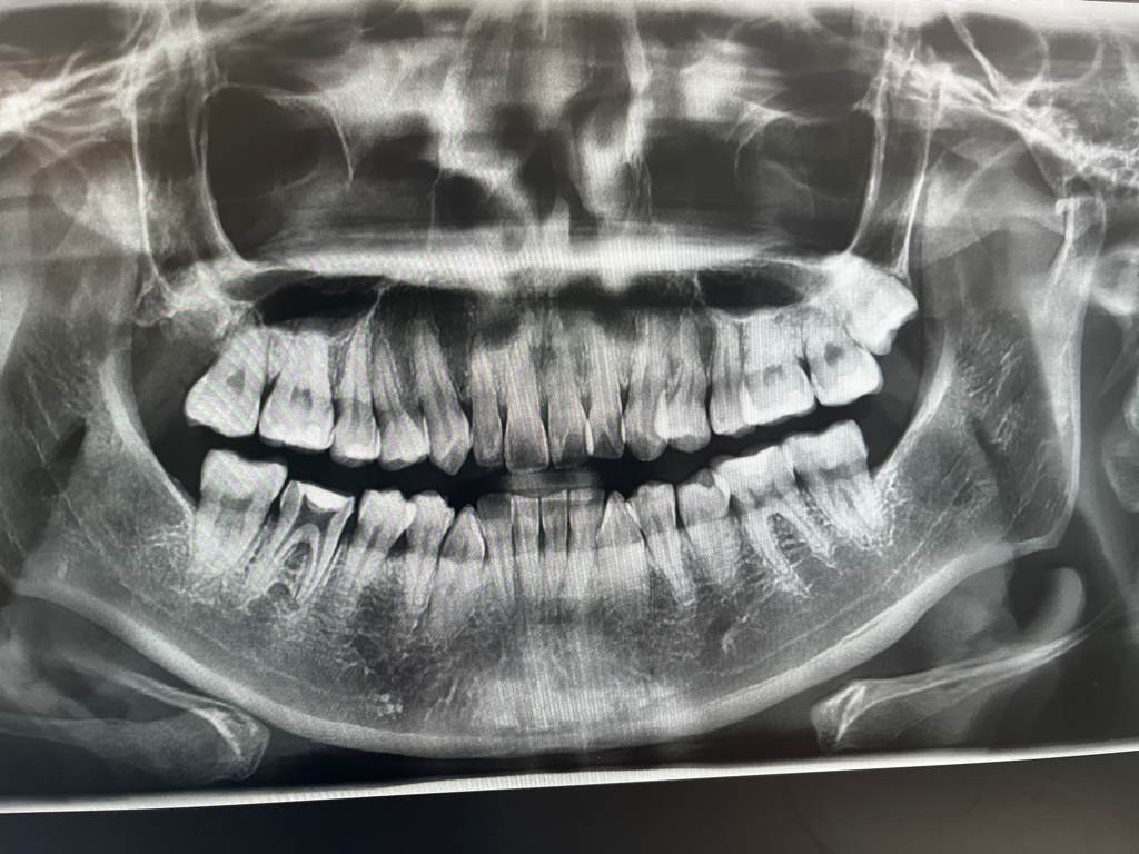신경치료를 하는치아는 크게 이상이 없어보이고 위쪽 오른쪽 앞니는 엑스레이 상에서 뿌리끝에 염증이 있습니다. 불편하시면 신경치료를 해야될 가능성이 있습니다.