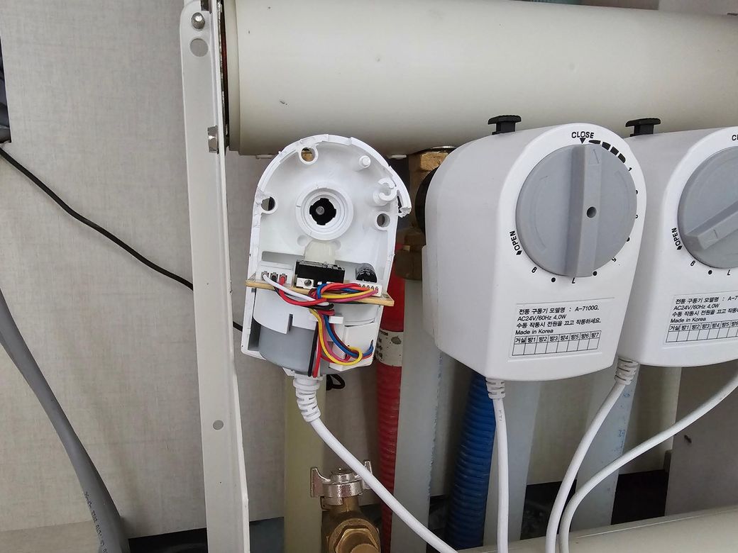 안녕하세요 올려주신 사진은 온수 배관개폐에 사용되는 전동 밸브입니다. 집안 내부의 배관 유량을 조절하는 부품으로 써 배관내 유량을 자동으로 열고 닫아주는 개폐장치 입니다.