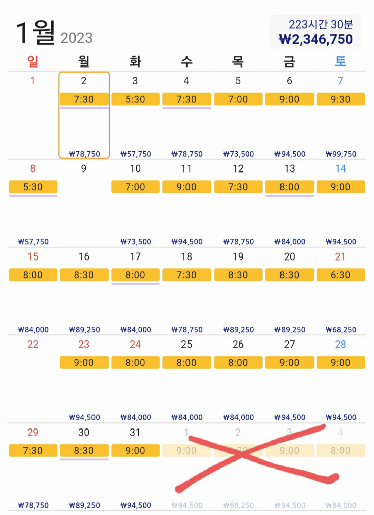 그러나, 매주 근로시간이 달라지는 스케줄 근무라면,