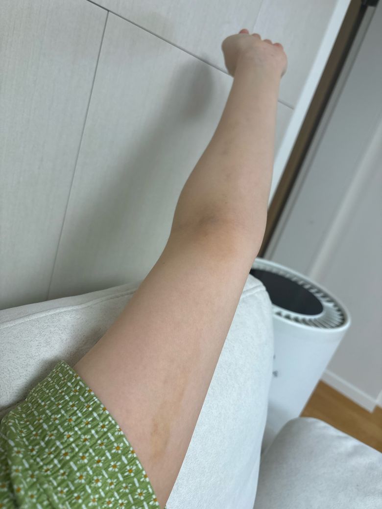 저녁에 보니 팔에 노랗게 멍이 들어있었어요.