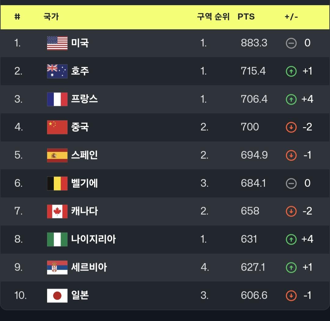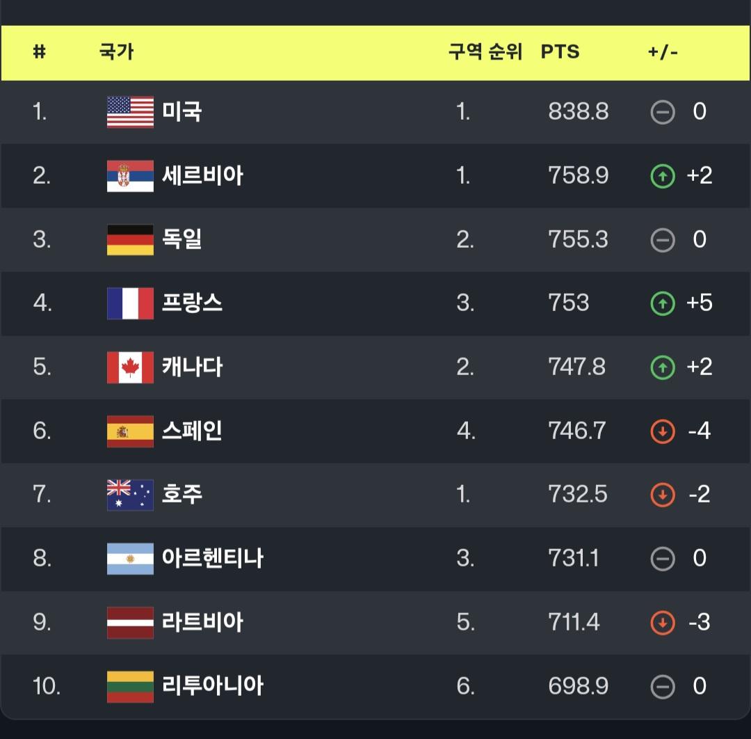 다음은 현재 2024년 8월 26일자 FIBA순위입니다. (보시다시피 1,2위 포인트 격차가 여자가 더 큽니다.)
