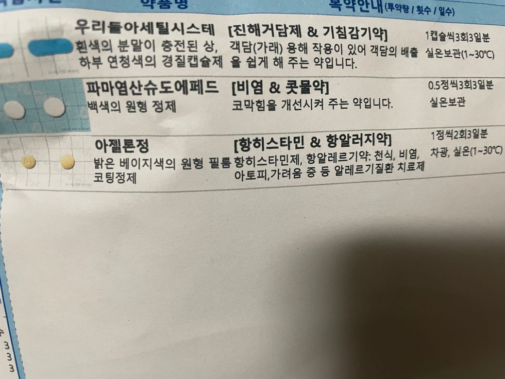 코감기약 오늘 처방 받은 것 아침약 먹었습니다