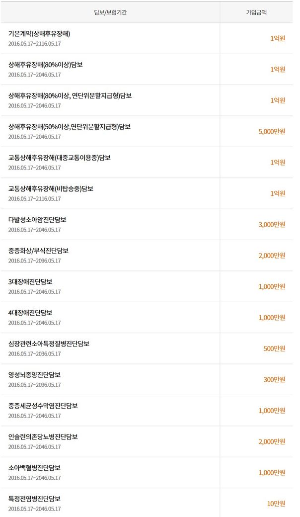 그 외 보험료가 상당히 저렴하다고 판단되는 특약들은 냅두셔도 됩니다.다만, 기본계약은 100세만기로 설정을 하였지만