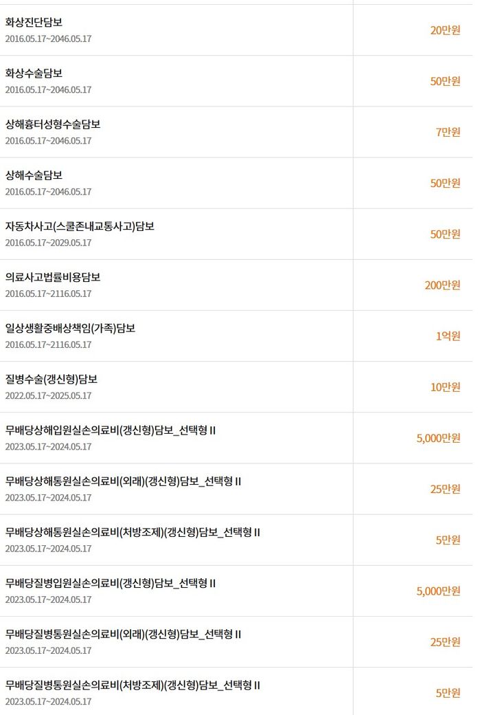 그리고 불필요한게 많네요. 불필요한것 때문에 보험을 새로가입하시는게 아닌 불필요한부분만 빼어내시고 기존 보험료를 낮추시면서 필요한걸 추가로 가입하시는 방안을 추천드립니다.