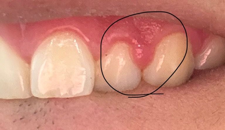 제목 그대로 아침에 거울을 보니 올록하게 잇몸이 부었더라고요 출혈이 있거나 통증이 있지는 않습니다 그저 사진 처럼 잇몸이 내려온것이 전부 입니다.