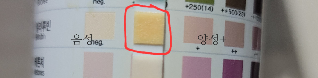 색깔이 분홍빛으로 가지 않는다면 음성으로 봐도 문제 없을 것 같습니다. 이미 예전부터 간에 대한 검사가 괜찮았다면 소변에서 빌리루빈이 배출되지는 않을 겁니다.