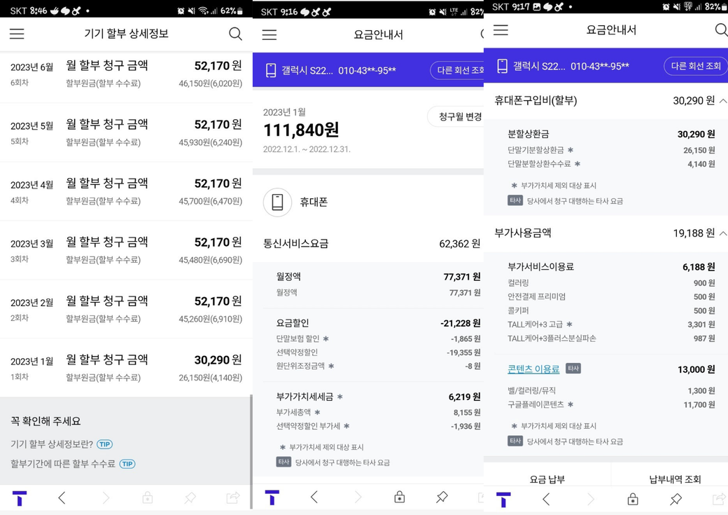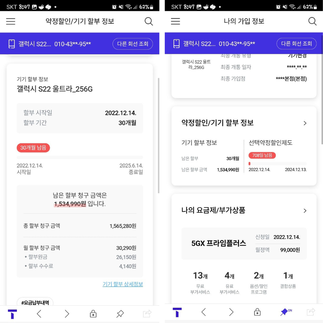 판매자는 번호가 바껴있었고, 바뀐 번호로 남편에게 전화가 와서 제가 다시 판매자에게 연락을 했습니다. 단말기 할부금과 할부 기간을 물어봤더니 1월이 돼서 요금 명세서를 받아보면 할인 내역이 뜰 것이고, 할부금도 바껴있을 것이라고 했습니다.(당시 12월) 그리고 이제 1월이 돼서 통신사 앱에서 확인해보니 여전히 그대로 입니다.