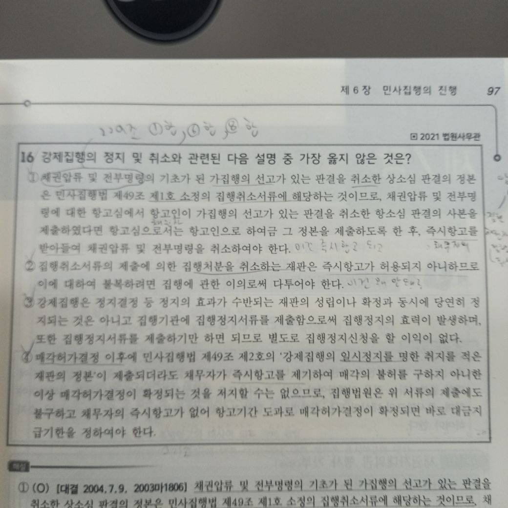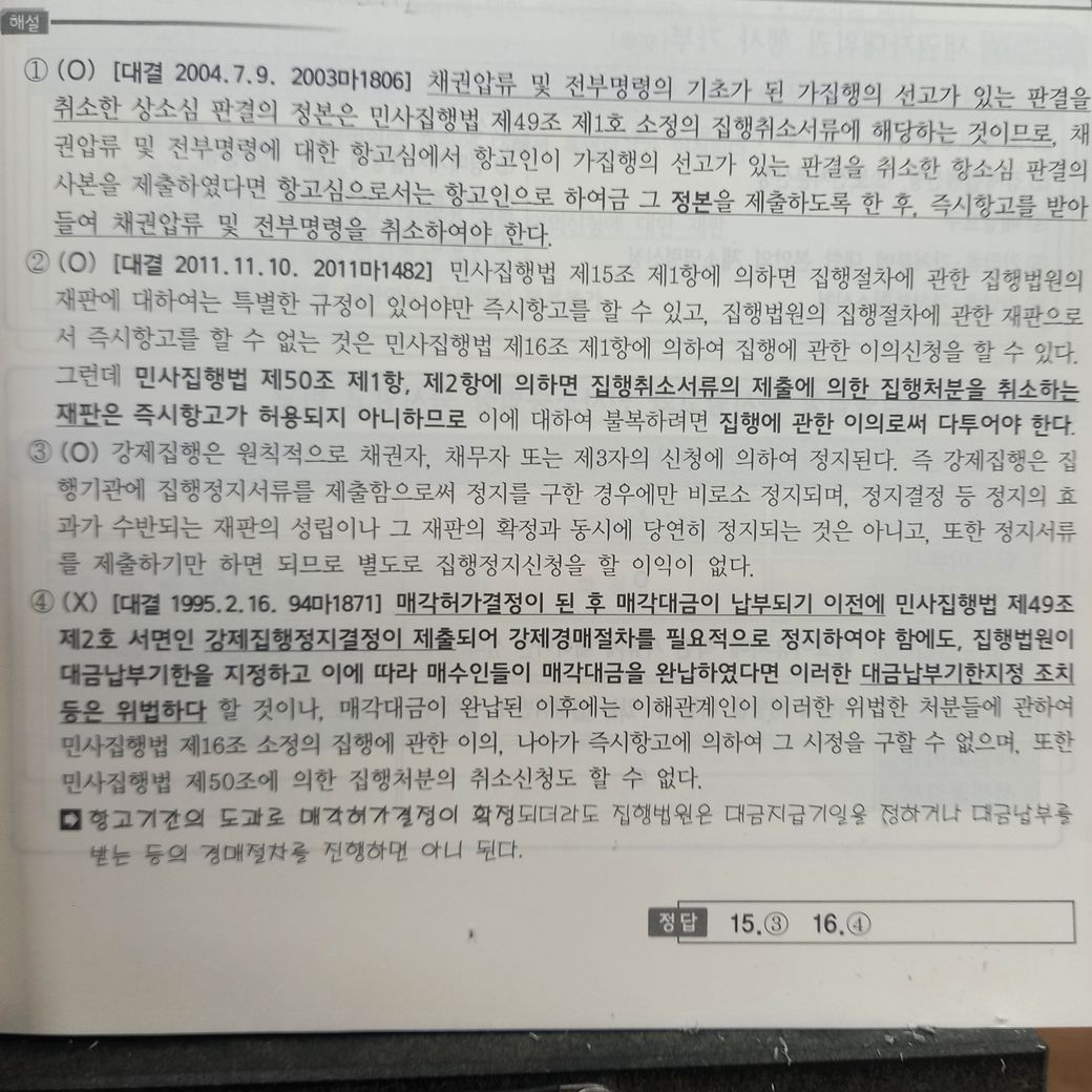 집행법 공부중인데 강제집행정지 파트 즉시항고 문제가 이해가 안되요