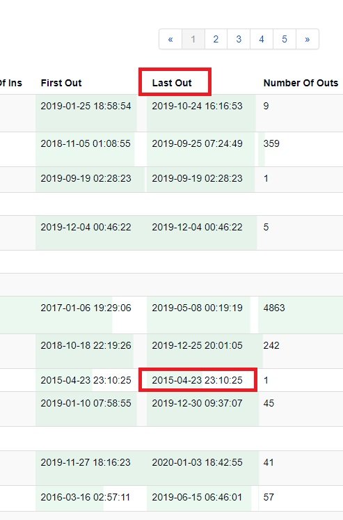 위에 보이는 것처럼 보유수량별 순위가 나오고 있고 마지막 에 LAST OUT항목이 나오는데 마지막에 출금이 된 시간을 확인할수 있습니다.